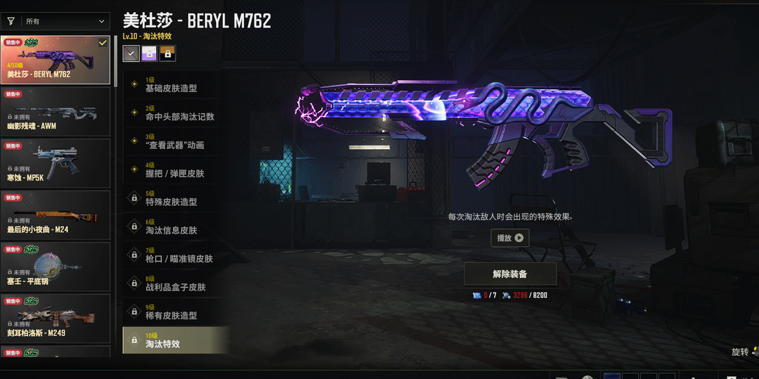 ④级美杜莎M762✅灵魂枷锁AKM✅沙悟净AUG✅镀金SKS✅金色神焰SLR✅无慈悲98K✅幽冥之握